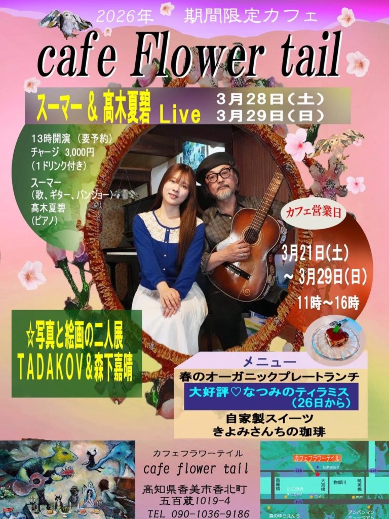 香美(高知)Cafe Flower Tail「スーマー × 髙木夏碧 LIVE」(2Days)